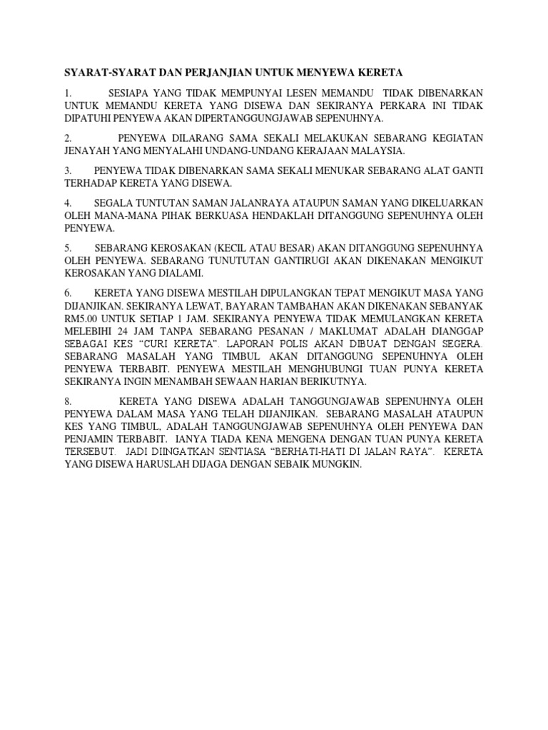 Contoh Perjanjian Sewa Rumah 2018 from imgv2-1-f.scribdassets.com Maybe you would like to learn more about one of these? Format borang sewa kereta text. We did not find results for: Check spelling or type a new query.